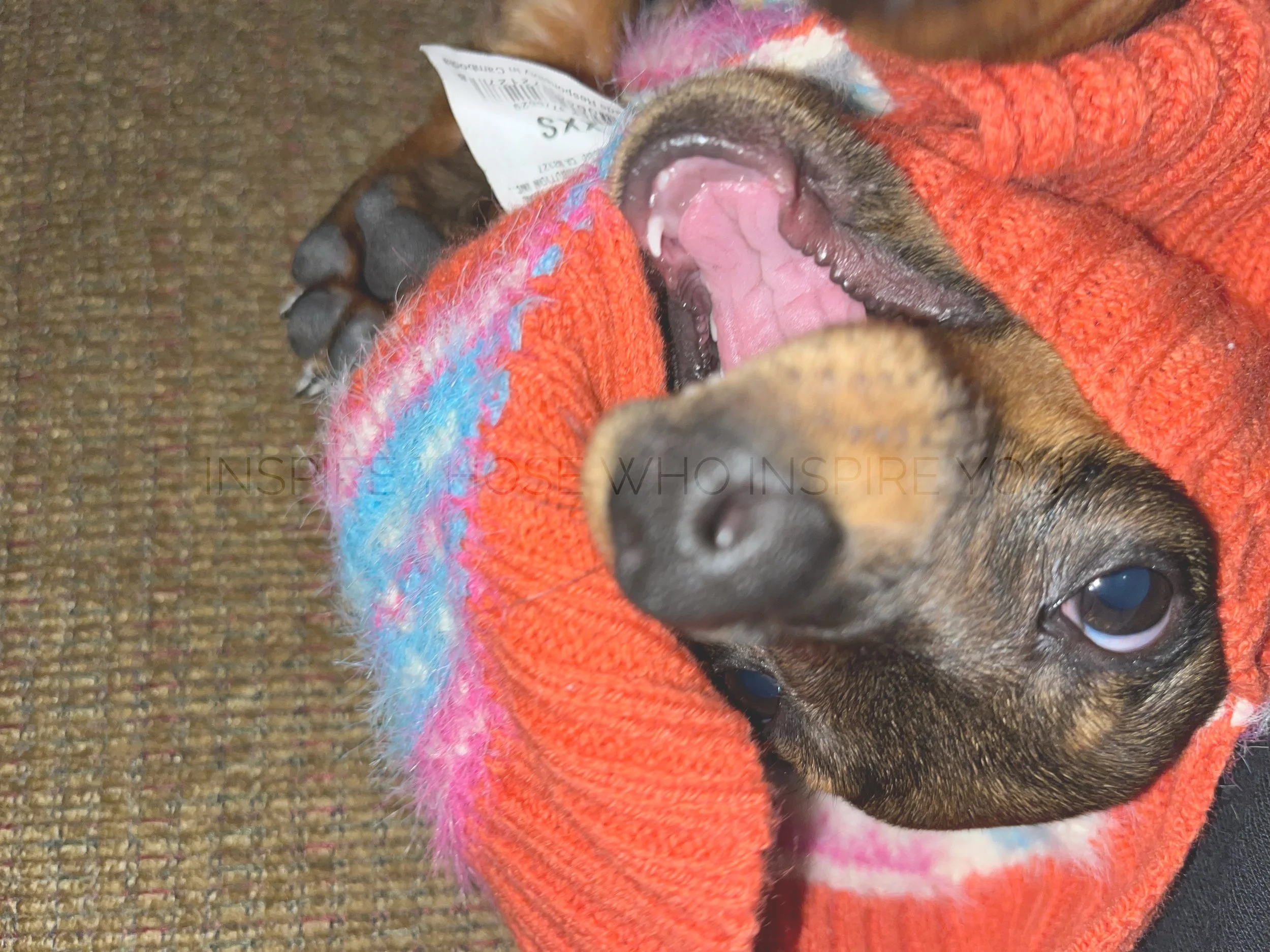 Her first trip to a park was a short one. It was the middle of winter and while there wasn’t snow on the ground just yet, it was cold especially to a small puppy like her. At the time, she had this beautiful patterned pink sweater. The only thing was is that it was too big on her but it did keep her warm. Then, as we were on the walk, a train came by. She was not a fan and still isn’t really a fan of how loud they are.